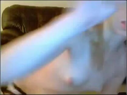 Blonde camgirl with small tits loves to be watched fucking. So she is with her partner on webcam as she rides him hard.