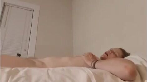 Horny wife is naked on the bed. A hidden cam caught her using a vibrator masturbating her needy pussy.